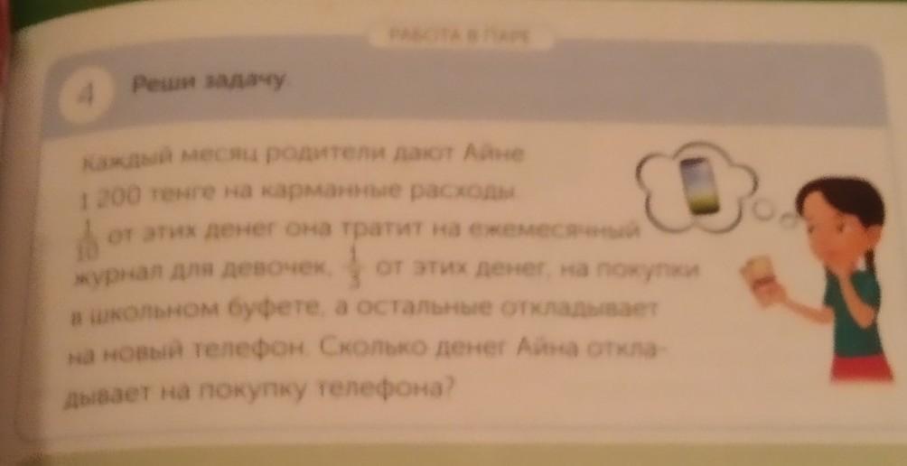 Каждый месяц родители дают Айне 1200тенге на карманные расходы.