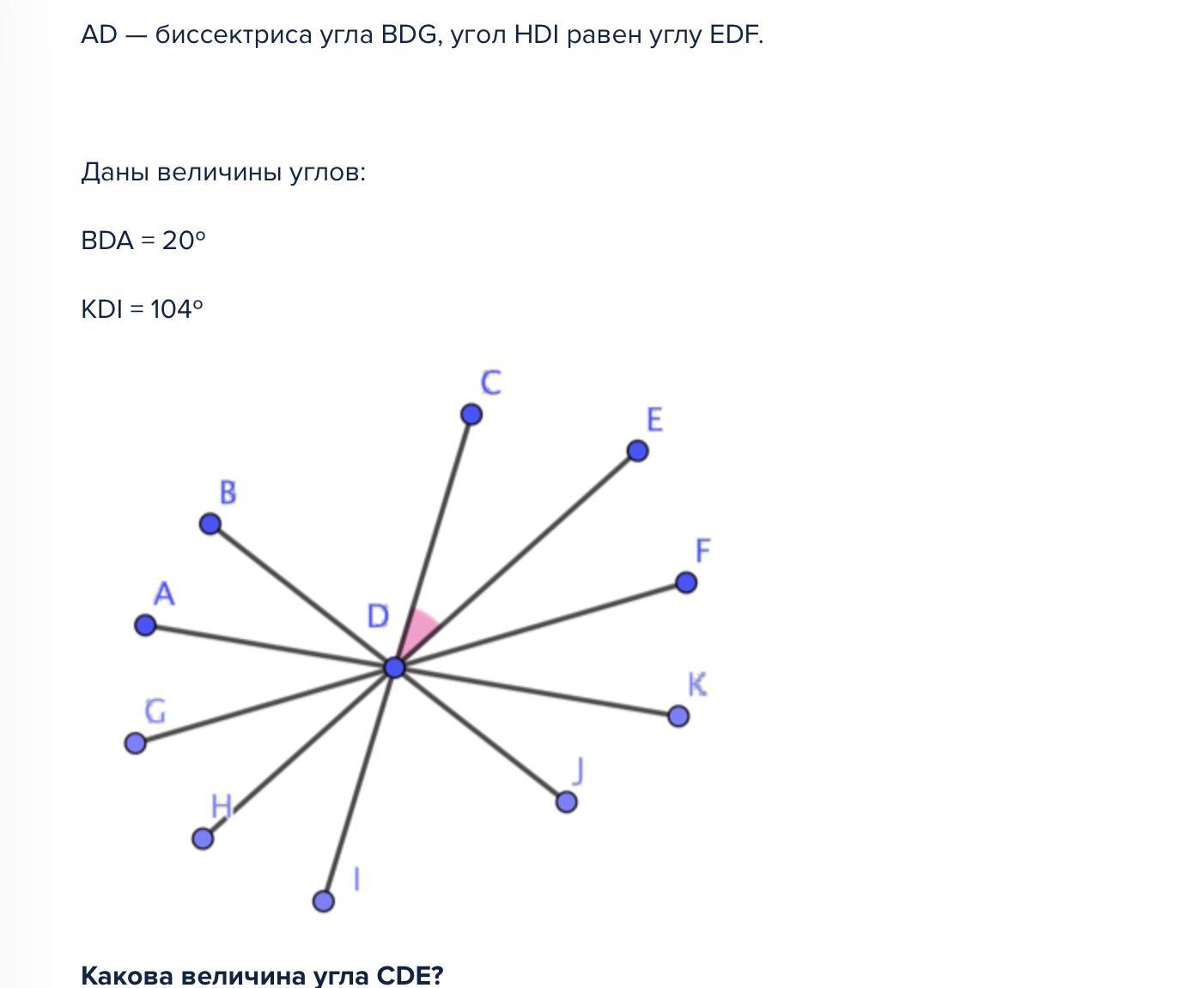 угол BDA=KDJ (как вертикальные)=ADG(по условию)=FDK(как вертикальные)=20 градусов