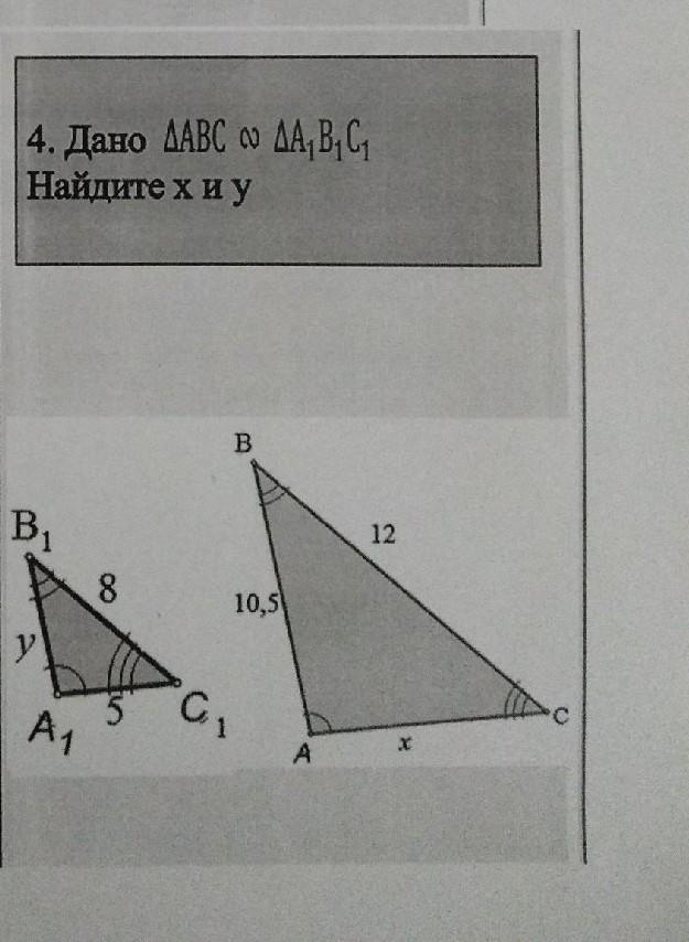 очень простая задача) я не буду просто ее решать а расскажу, что нужно сделать, чтобы решить. Так как мы знаем, что треугольники подобны, то можно найти коэффициент подобия(к): ВСВ1С1 .