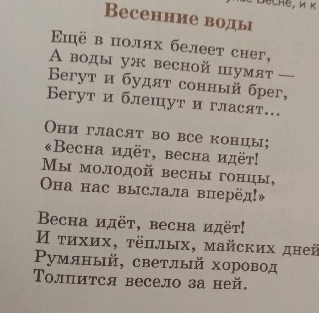 О весне, весенних водах. Весеннюю природу. Май. Белеет. Сонный. Бегут. Будет. Блещут. Гласят. Идёт. Молодой. Вперёд. Тихих. Румяный. Светлый.