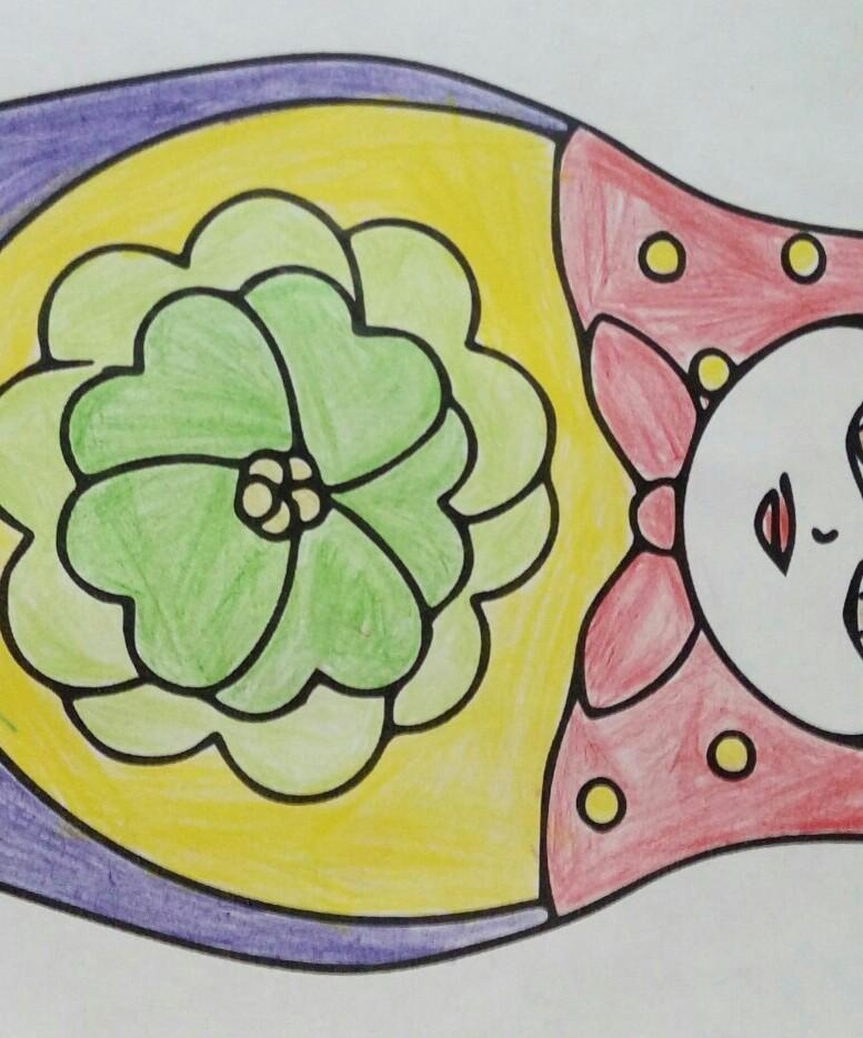 Это красивая,расписная русская матрёшка.У неё красные губы.Красный платочек,который в жёлтый горошек.У неё маленький носик,что ей очень подходит. На ней нарисован изумительный зелёный цветочек.Живот раскрашен в жёлтый цвет,края которого синие .Платочек завязан бантиком.В середине цветочка находятся жёлтые,маленькие круги.У неё красивые глаза.Вот какая красочная и яркая эта матрёшка.