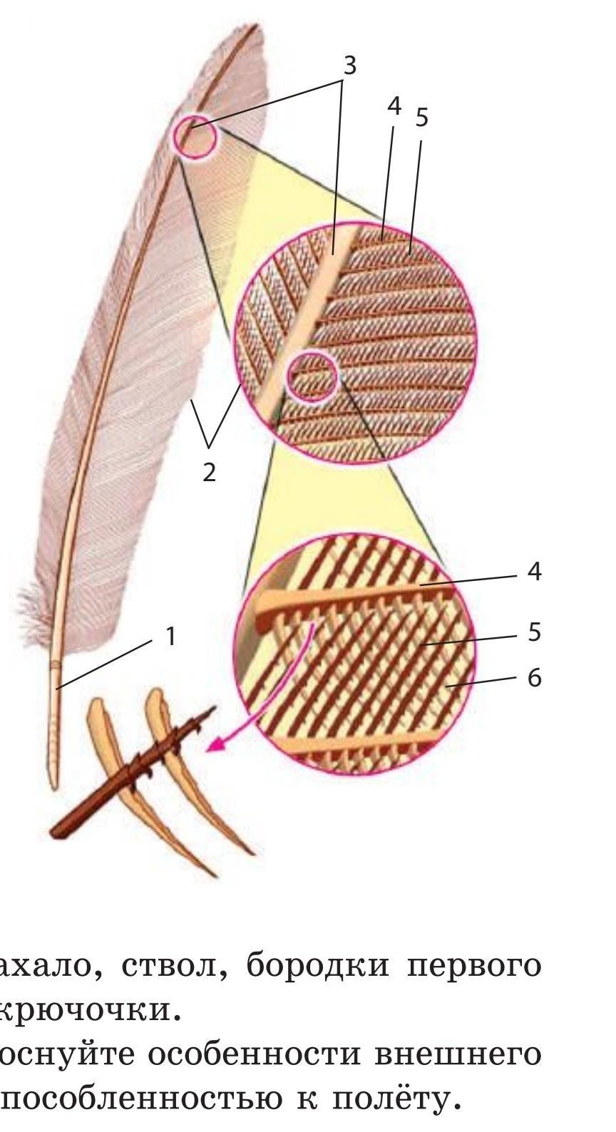 Исследуйте перья птицы. Определите, какими цифрами обозначены