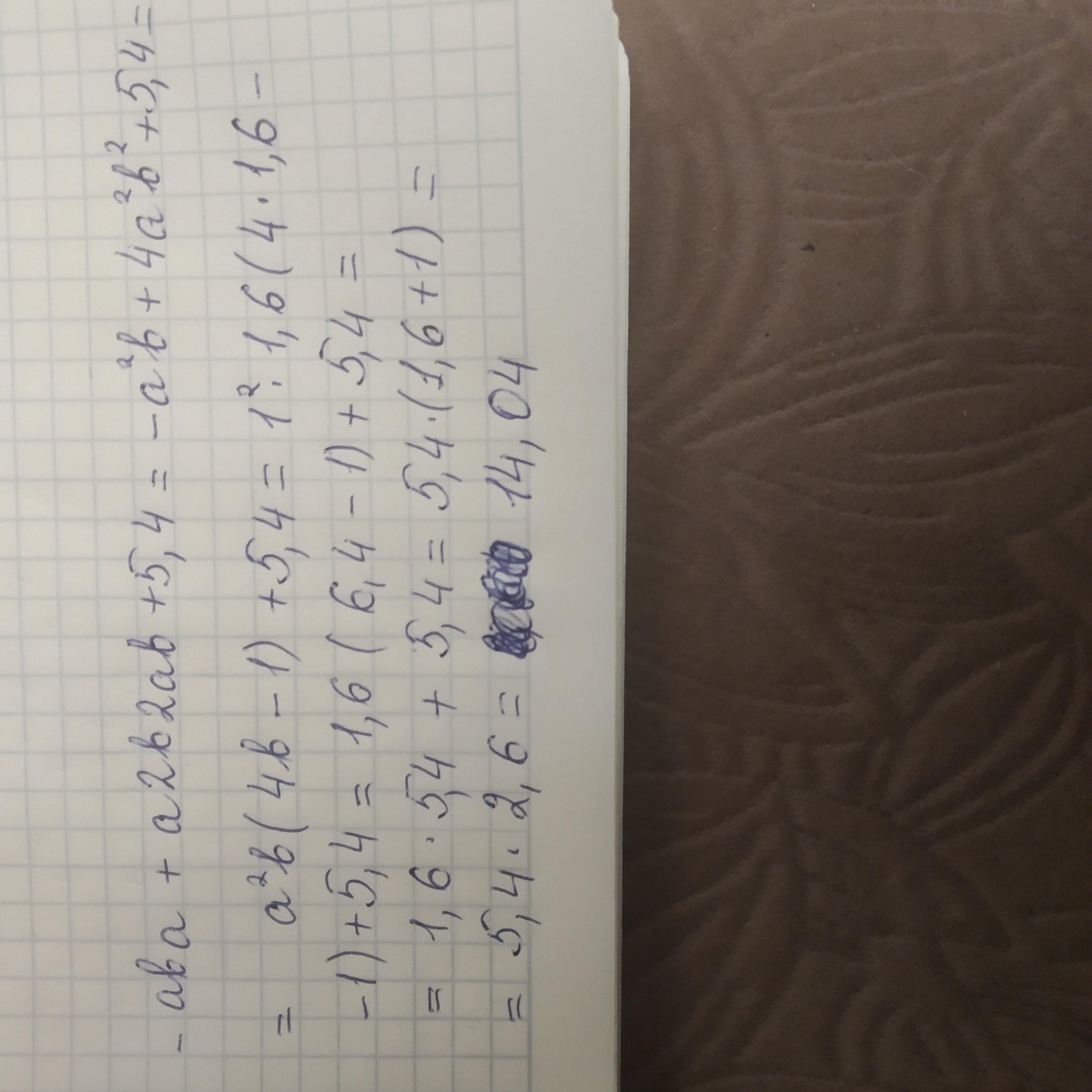 Упрости многочлен и найди его числовое значение: −aba+a2b2ab+5,4, если a=1,b=1,6. Числовое значение многочлена равно