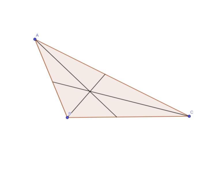 Начертите тупоугольный треугольник и проведите в нём 3 биссектрисы! Если поможете, помогу ваш пример