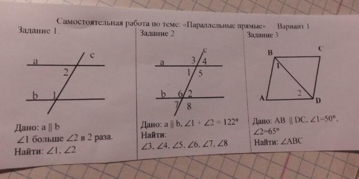 2) ∠1 = ∠2 - как накрест лежащие углы = 122° 2 = 61°