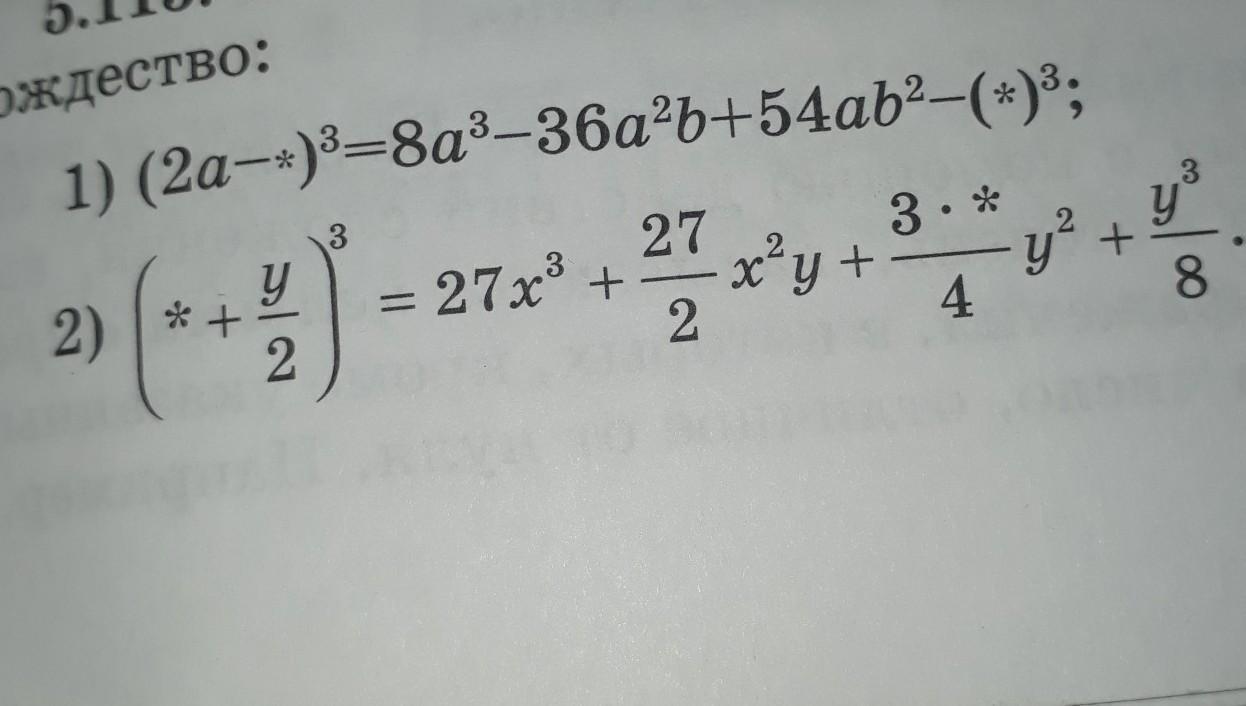 1) (2а-*)^3=8а^3-36а^2b+54аb^2-(*)^3