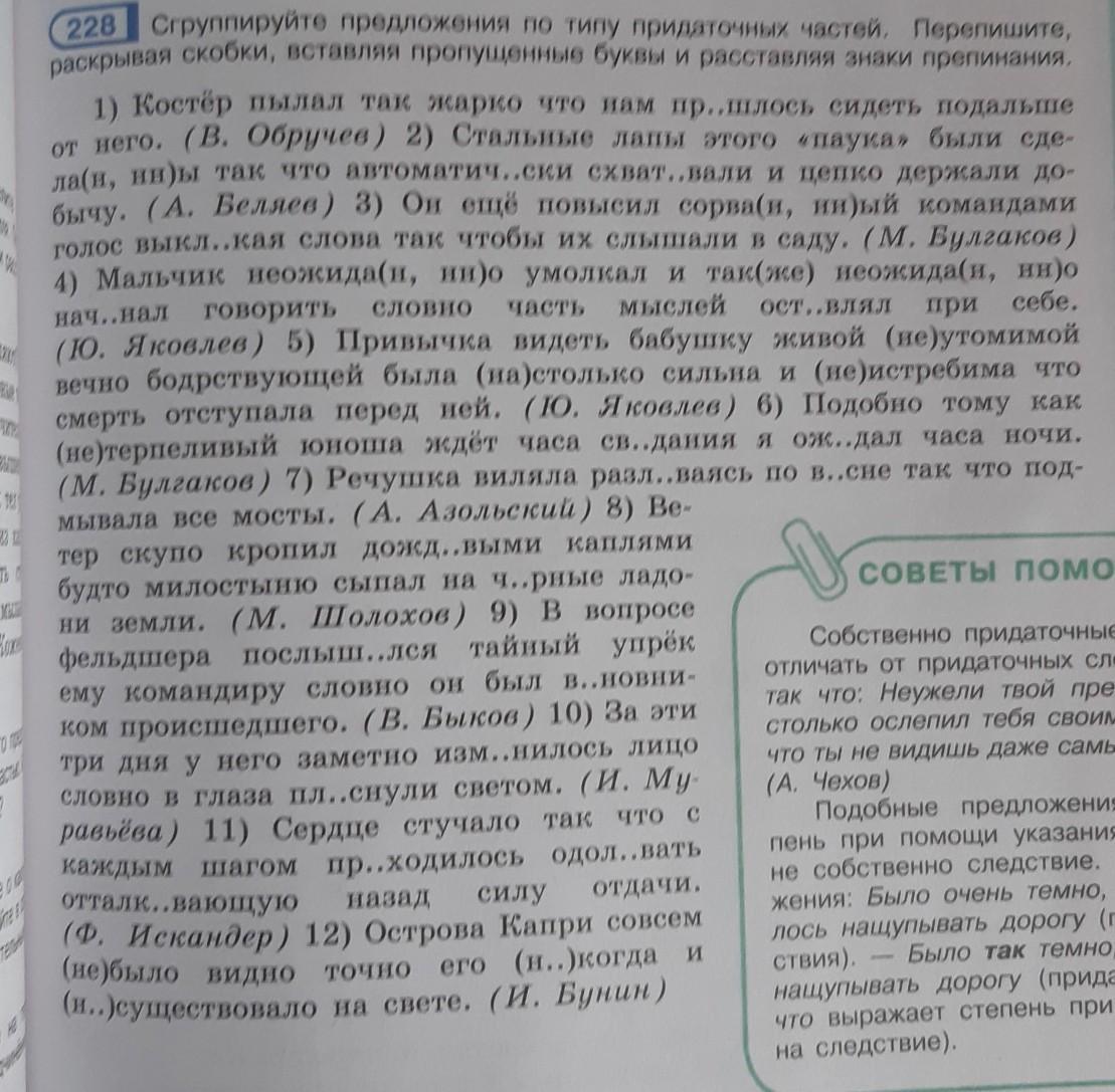 сгруппируйте предложения по типу придаточных частей.