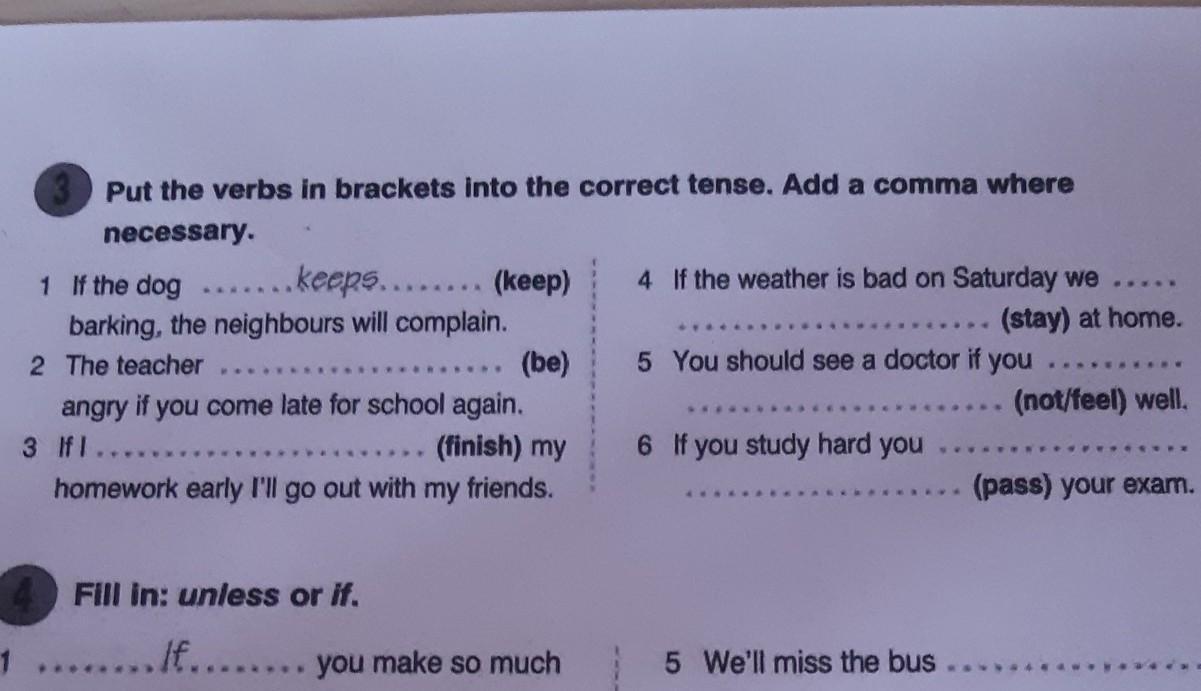 2 will be 3 finish( после early запятая) 4 will stay ( после Saturday запятая) 5 don’t feel 6 will pass ( после hard запятая)