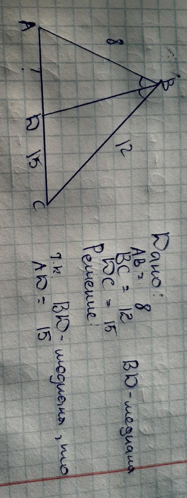 медиана-отрезок,соединяющий вершину треугольника с серединой противоположной стороны