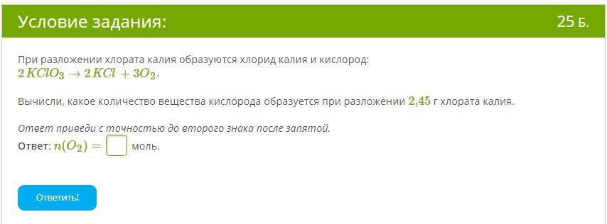 n(O2) = 2,45 * 3 / 245 = 0,03 моль