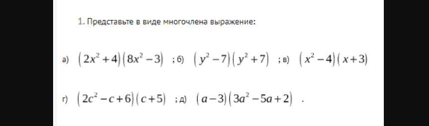 д)(a-3)(3a²-5a+2)=a*(3a²-5a+2)-3(3a²-5a+2)=3a³-5a²+2a-9a²+15a-6=3a³-14a²+17a-6
