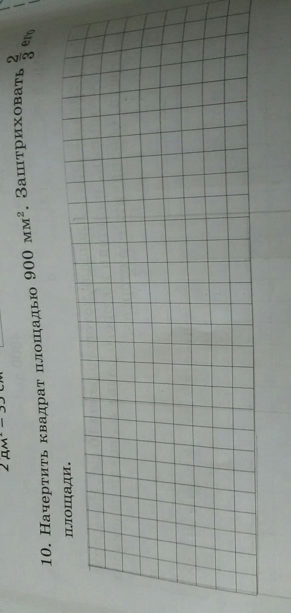 Для того чтобы заштриховать 2/3 его площади, посчитаем сколько клеток занимает квадрат: 6*6 = 36 клеток