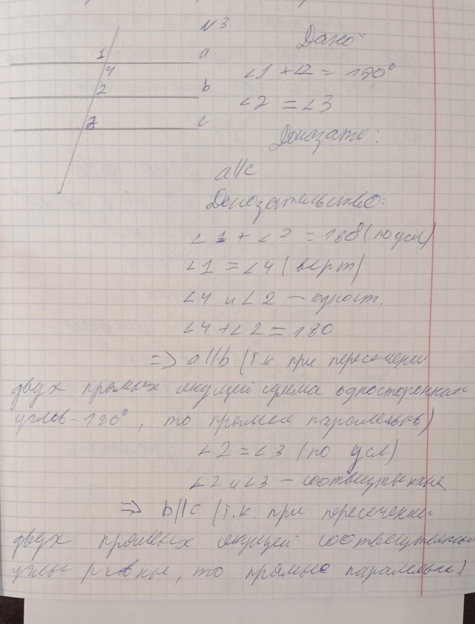 а при пересечении двух прямых секущей сумма односторонних углов равна 180 градусов то прямые паралельны