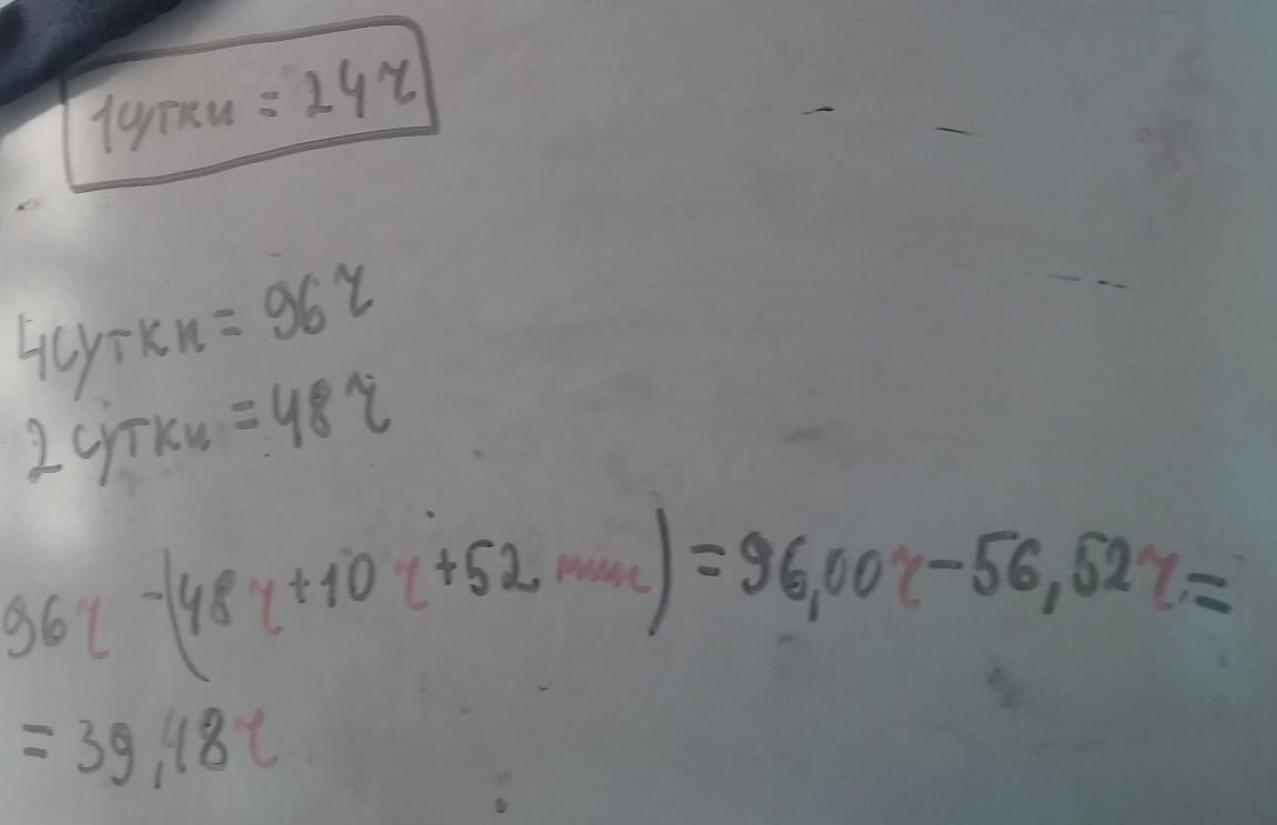 3 сут 23 ч 60 мин - 2 сут 10 ч 52 мин = 1 сут. 13 ч. 8 мин.