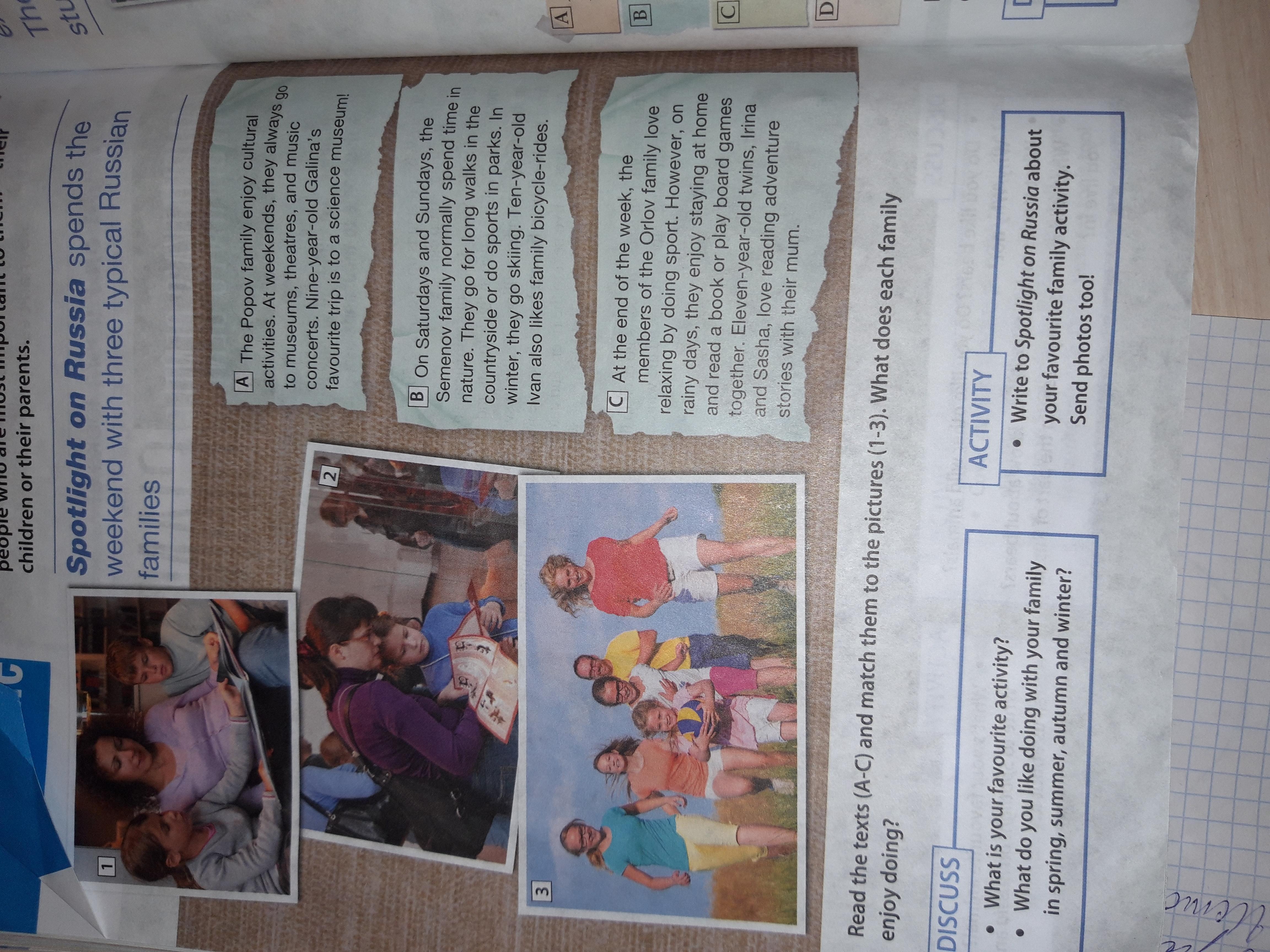 Напиши Spotlight (тоже ненаю...) на русском про любимое семейное занятие. Пришли фотографии тоже! ("too" это "тоже")