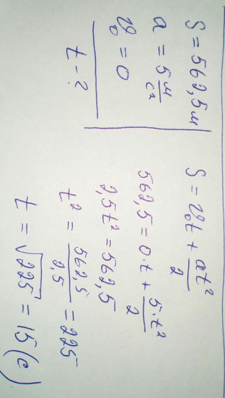 Поїзд відійшов від станції пройшов шлаях 562.5м скільки часу знадобиться для цього. Якщо він рухається з постійним прискоренням 5м/с квадратну
