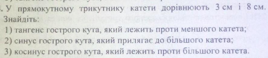 Дано: ΔABC - прямокутний (∠С=90°), ВС= 3 см, АС= 8 см.