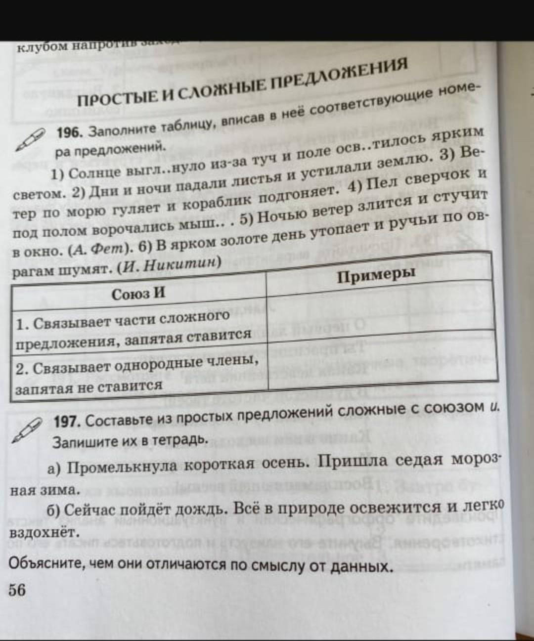 6)В ярком золоте день утопает ,и ручьи по оврагам шумят (Слож.предлож)