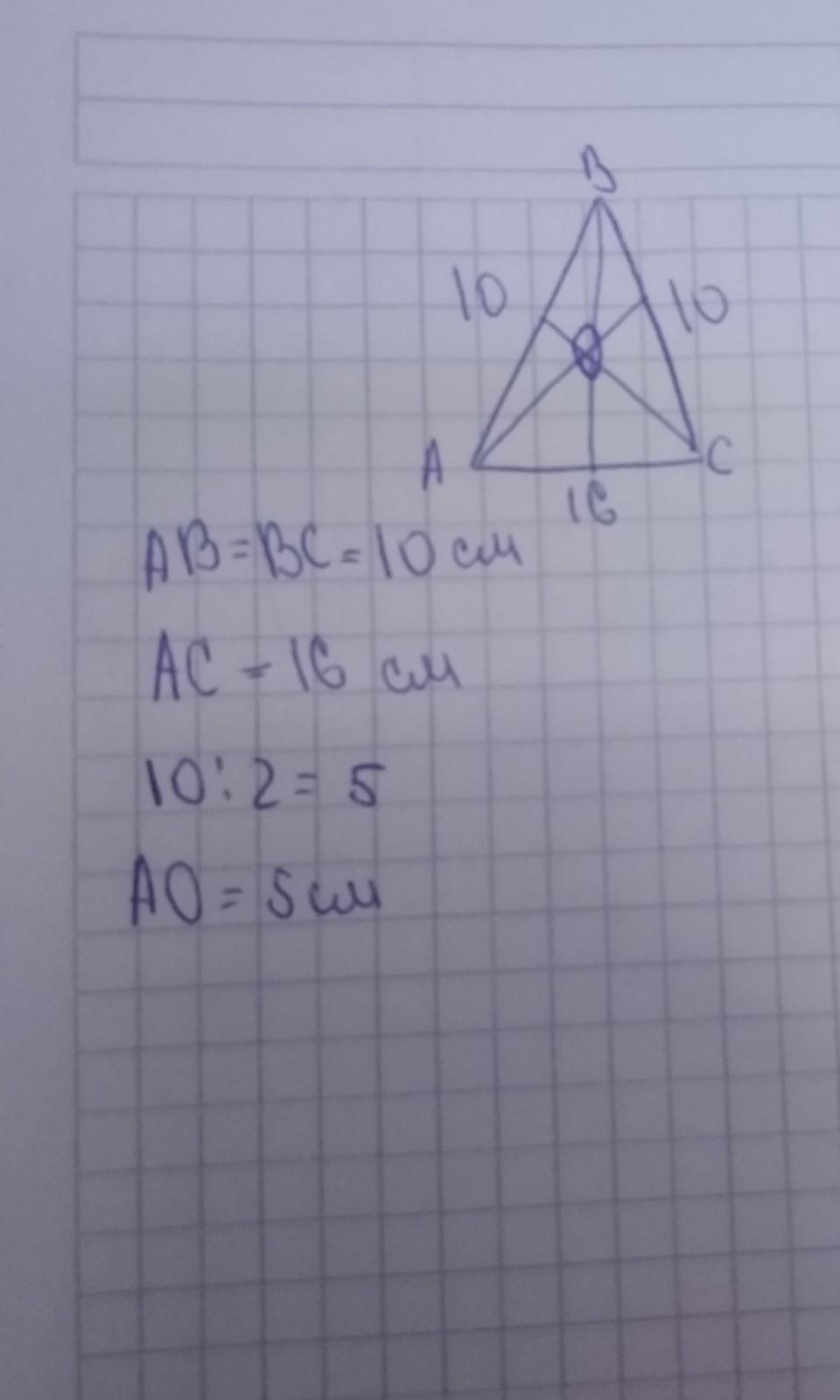 там сказано что АВ=ВС=10 значит как мы знаем медиана делит углы пополам. 10:2=5