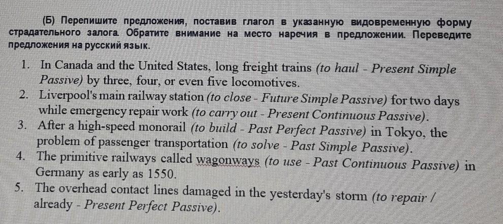 (Б) Перепишите предложения, поставив глагол в указанную видо-временную форму страдательного залога. Обратите внимание на место наречия в предложении.