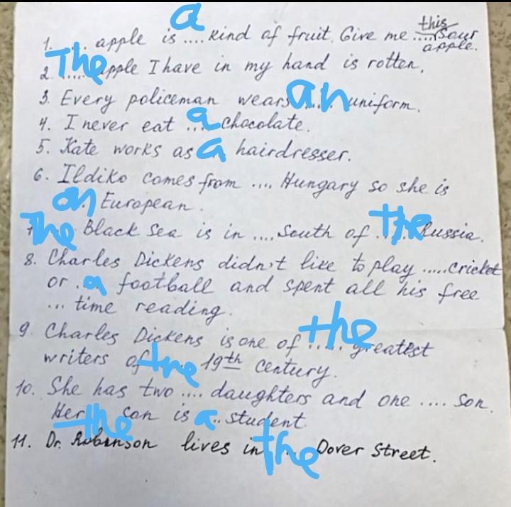 Нужно вставить артикль a/an/the или ничего не вставлять