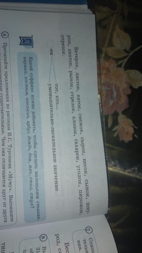 Спишите, распределяя имена существительные по группам в зависимости от значения суффикса: 1)обозначающие предметы, 2) уменьшительно ласкательное значения.