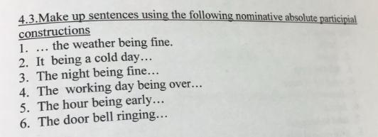 3. The night being fine, I didn’t want to go bed. – Так как ночь была прекрасна, я не хотел ложиться спать.