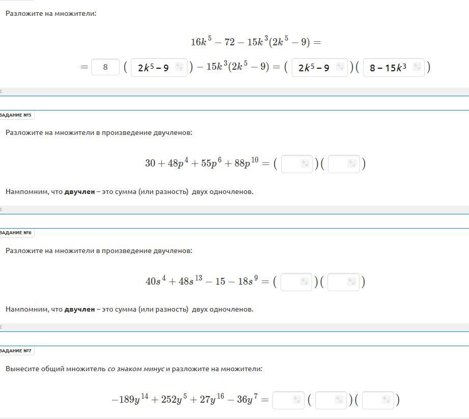 40s^4+48s^13-15-18s^9=5(8s^4-3) + 6s^9(8s^4 - 3)=(5+6s^9)(8s^4-3)