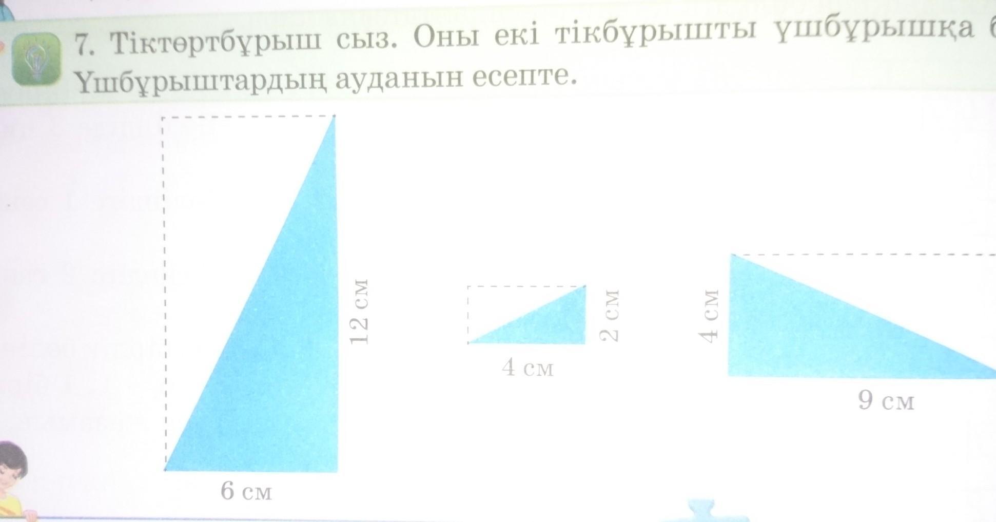 S= (6*12):2=36 cм² S=(4*2):2=4 см² S=(4*9):2=18 cм²