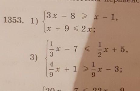 1) 3x-x>=8-1 и x-2x<=-9, 2x>=7 и -x<=-9, x>=3,5 и x>=9, отв. x>=9