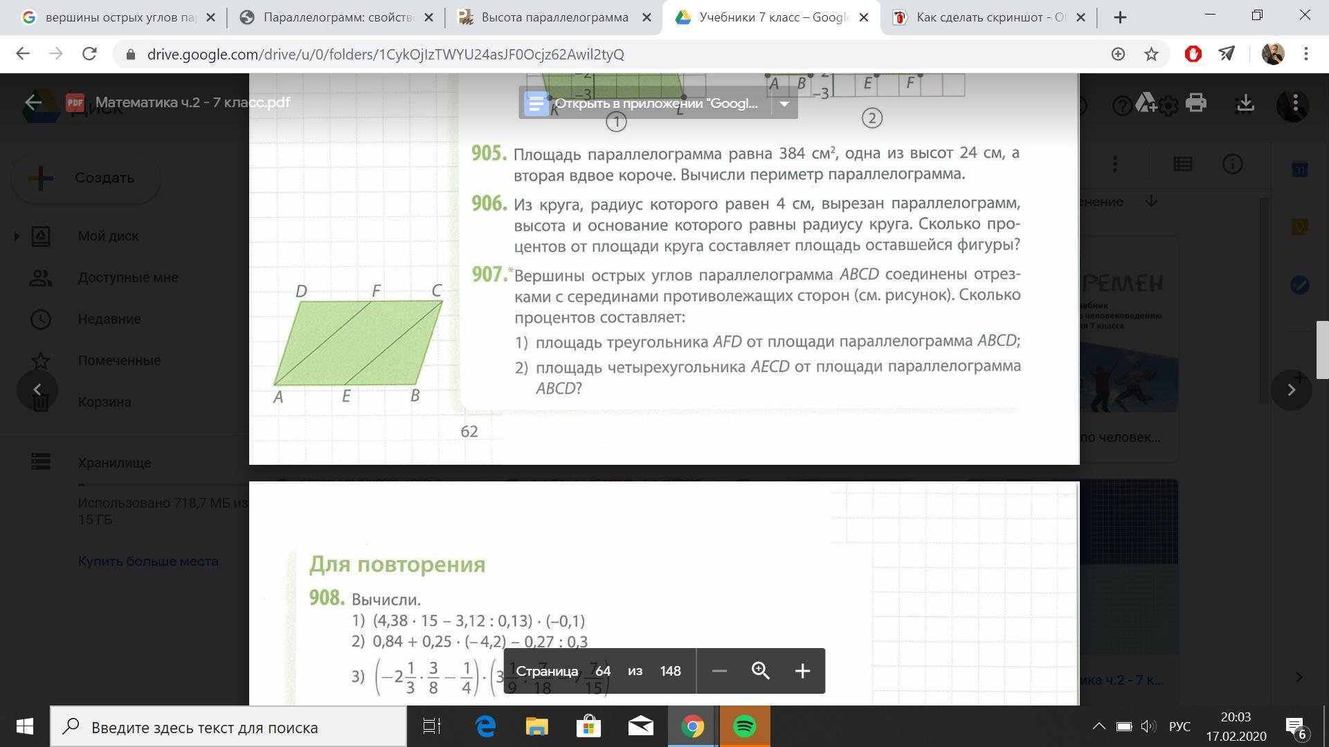 1. Площадь паралеллограмма ABCD (по формуле площади паралеллограмма):