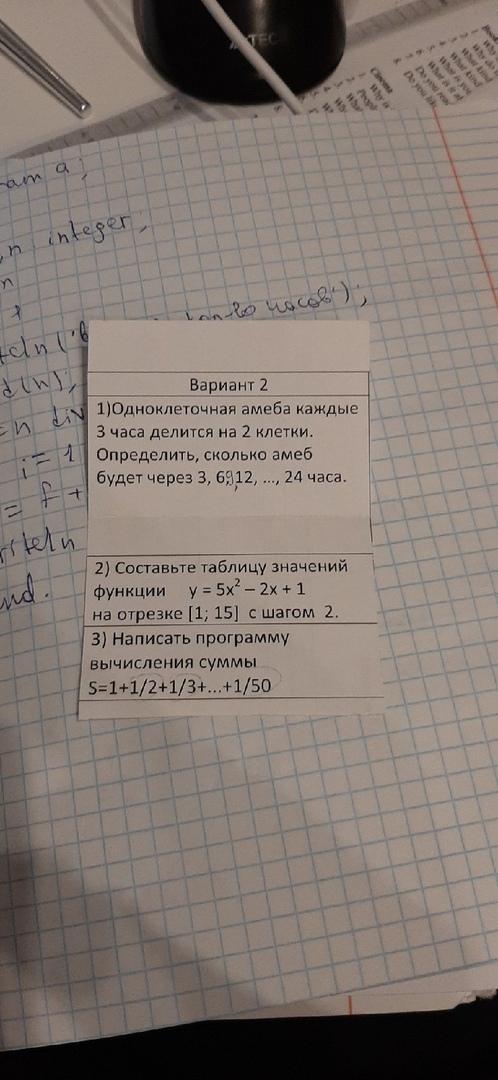 writeln('Через ',i, 'ч : ' , power(2, i div 3));