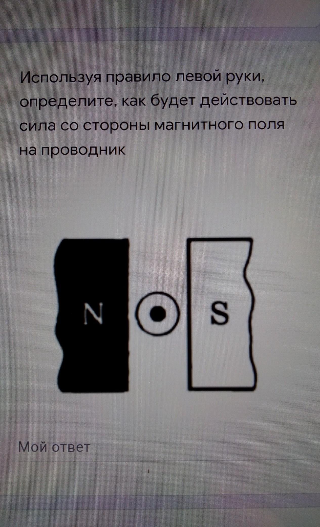 По Правилу левой руки направление тока входит в ладонь, а 4 пальца определяют направление действия магнитного поля. Большой палец, отставленный от этих четырех будет показывать направление действия силы магнитного поля