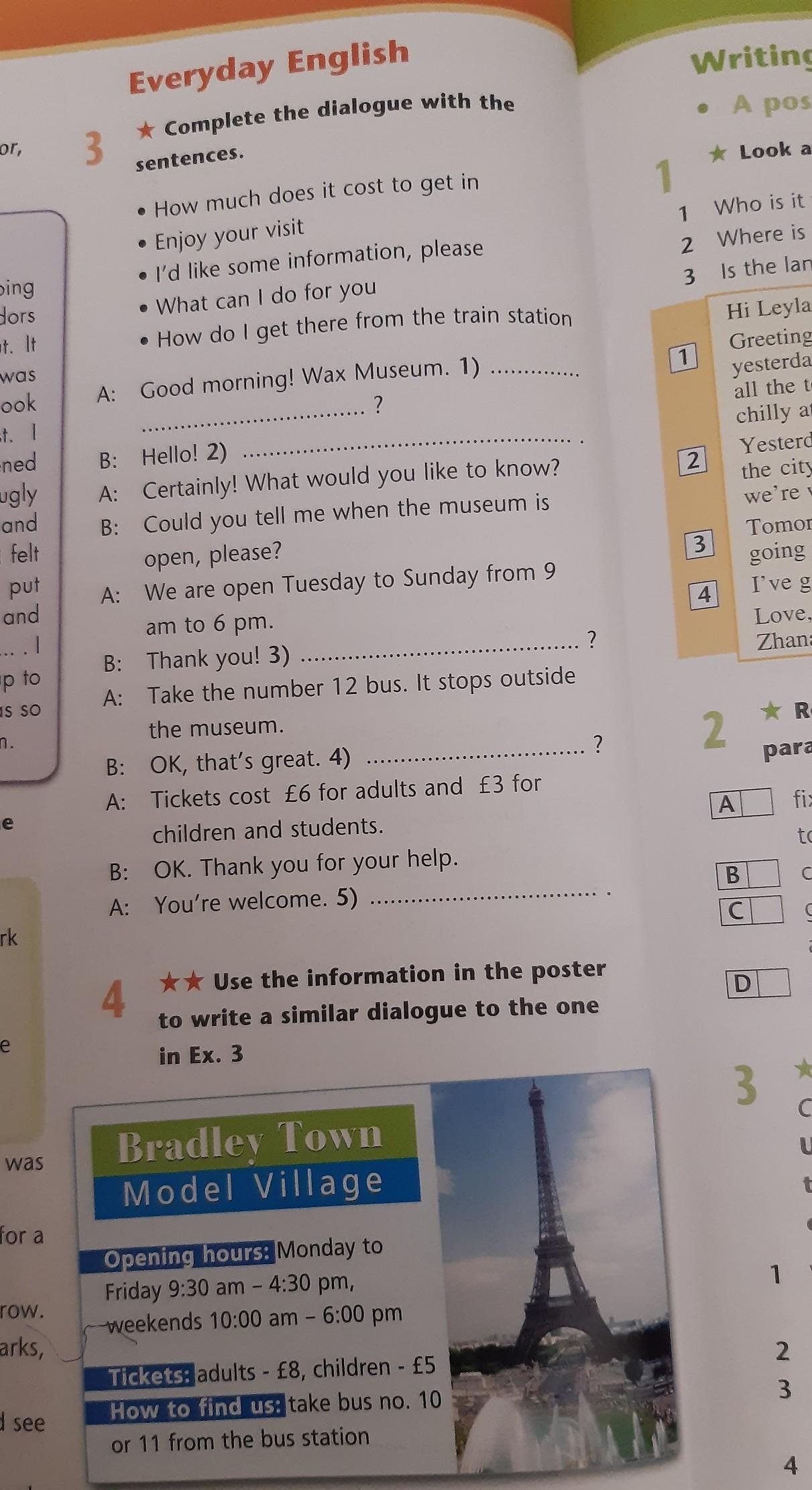 use the information in the poster to write a similar dialogue to the one in ex 3