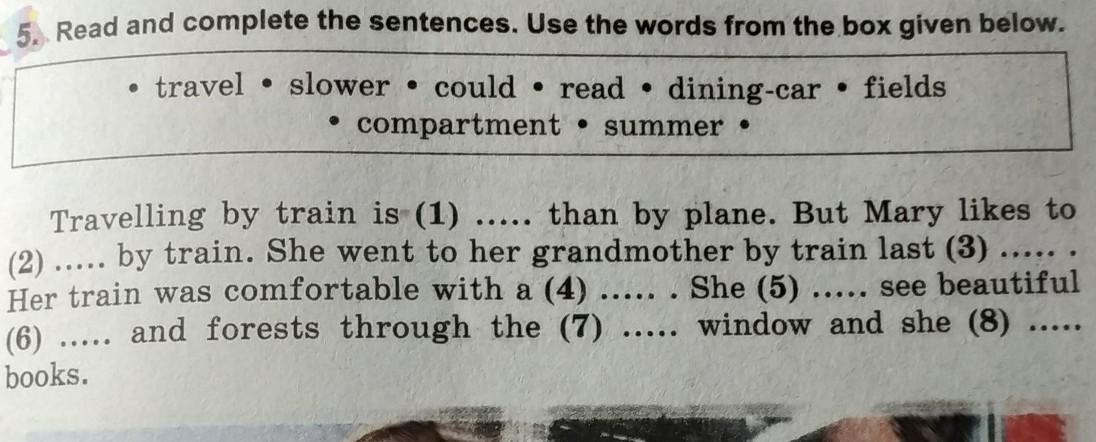 Travelling by train is slower than by plane. But Mary likes to travel by train. She went to her grandmother by train last summer. Her train was comfortable with a dining-car. She could see beautiful fields and forests through the compartment window, and she read books.
