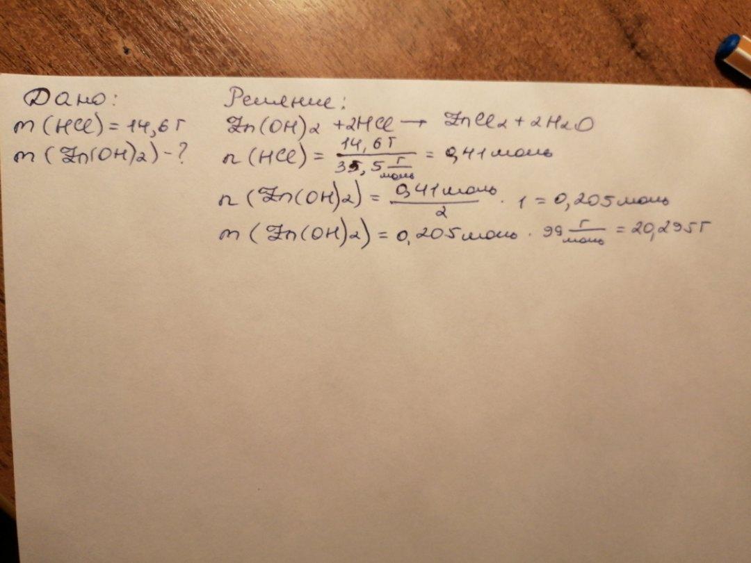 Вычисли, какая масса гидроксида цинка может прореагировать с раствором, содержащим 14,6 г хлороводорода.