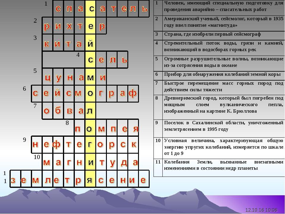 Составить кроссворд по теме "ЧС техногенного и природного характера" (не менее 15 слов, письменно в тетради)