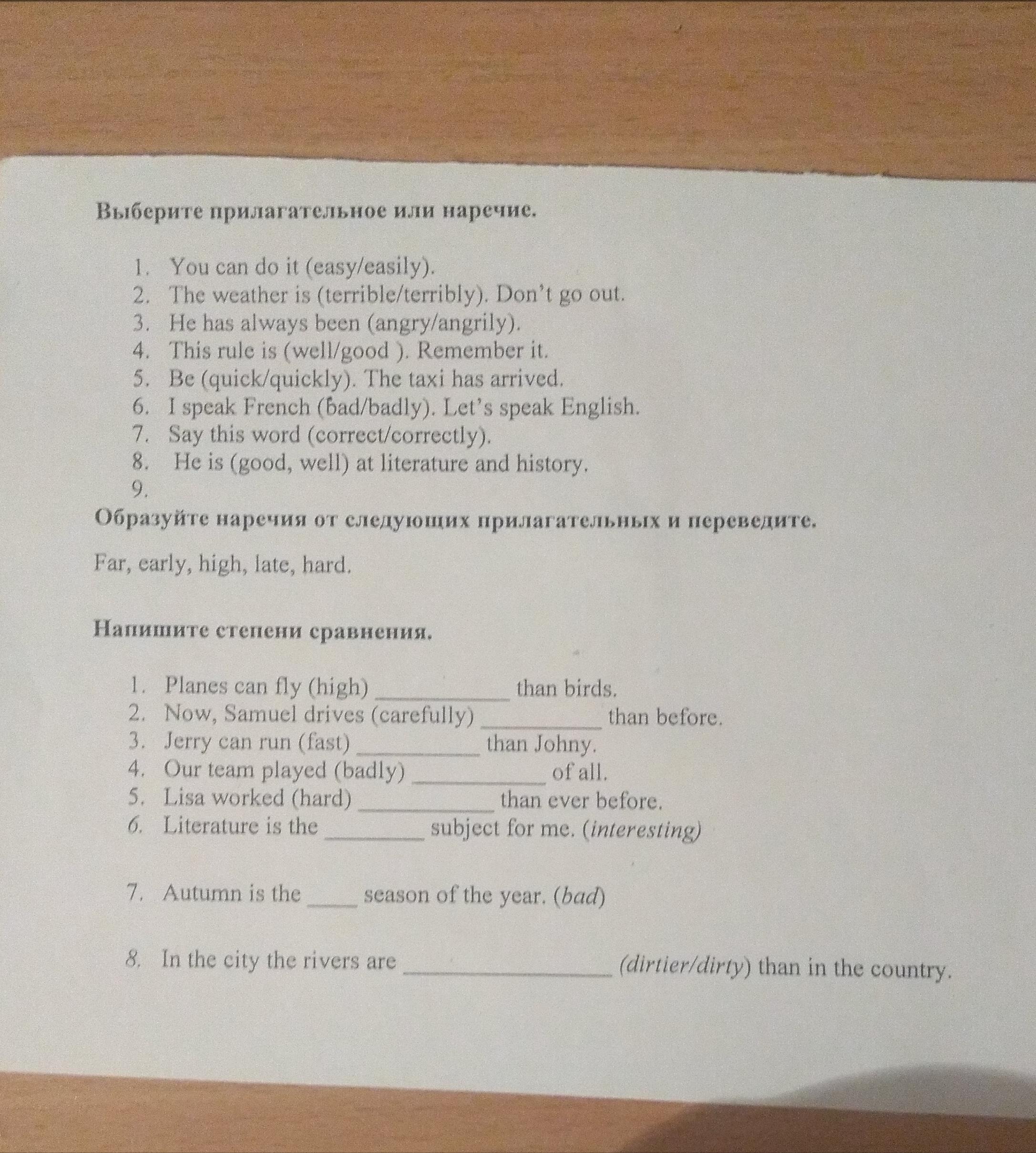 ! Существуют наречия «Flat adverbs» («bare adverbs»), форма которых совпадает с соответствующими прилагательными. Некоторые из них: «far», «early», «high», «late», «hard» и др.