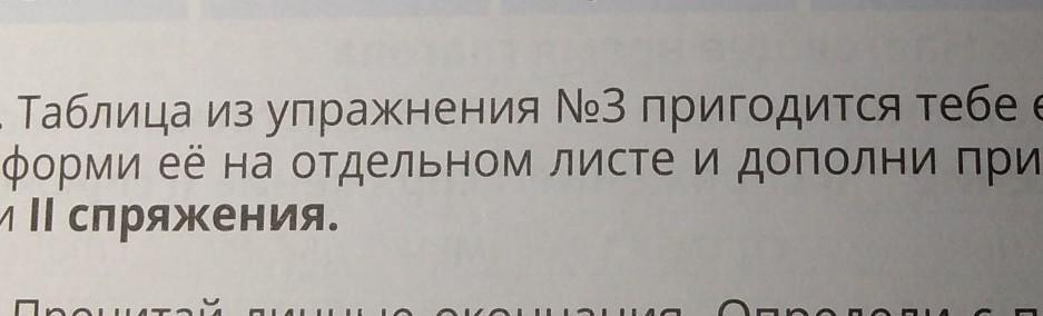 таблица из упражнения 3 пригодится тебе ще не раз. Оформи её на отдельном листе и дополни примерами | и || спряжения