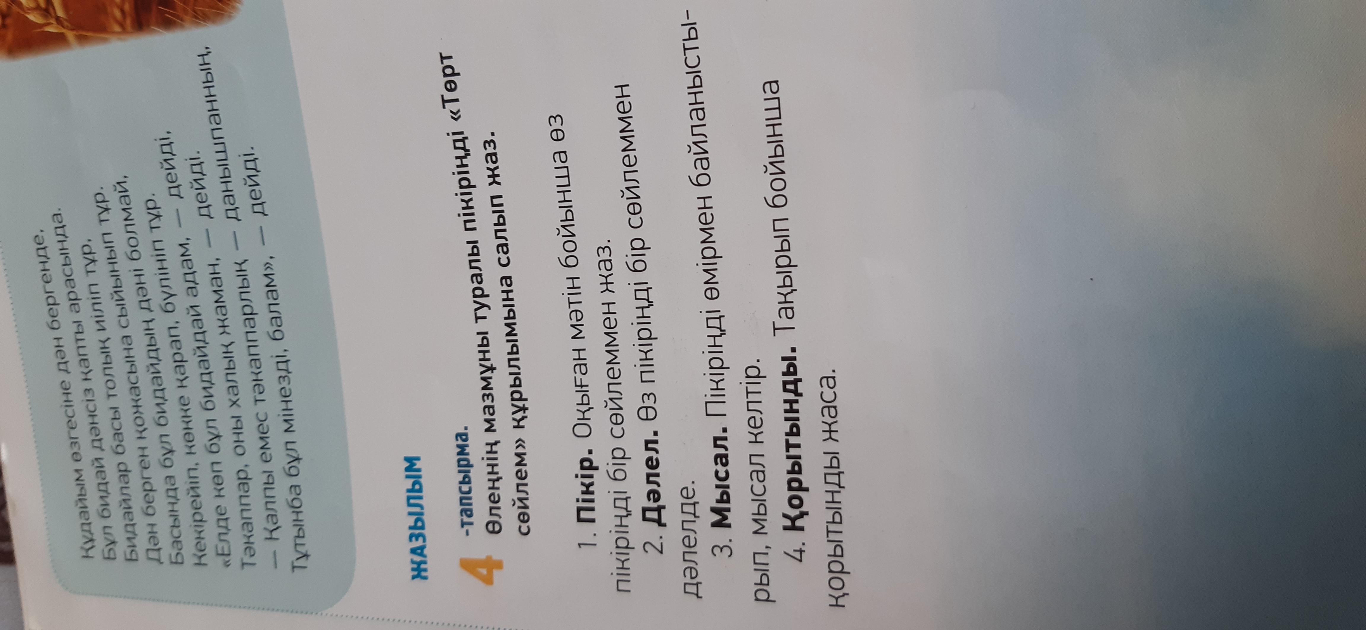 Егіннің бастары желмен шайқалып тұр.Биыл егін өте жақсы,бітік болғандықтан,егіннің бастары жерге иіліп тұр.Бидай,арпа дәндері егілген алқапты бірден байқадым,себебі егіннің бастары алыстан көрініп тұр.Егінді алқапқа егіннің бастары ерекше сән беріп тұр