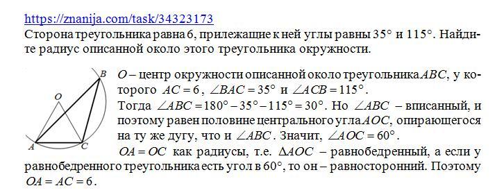 115°. Найдите радиус описанной около этого треугольника