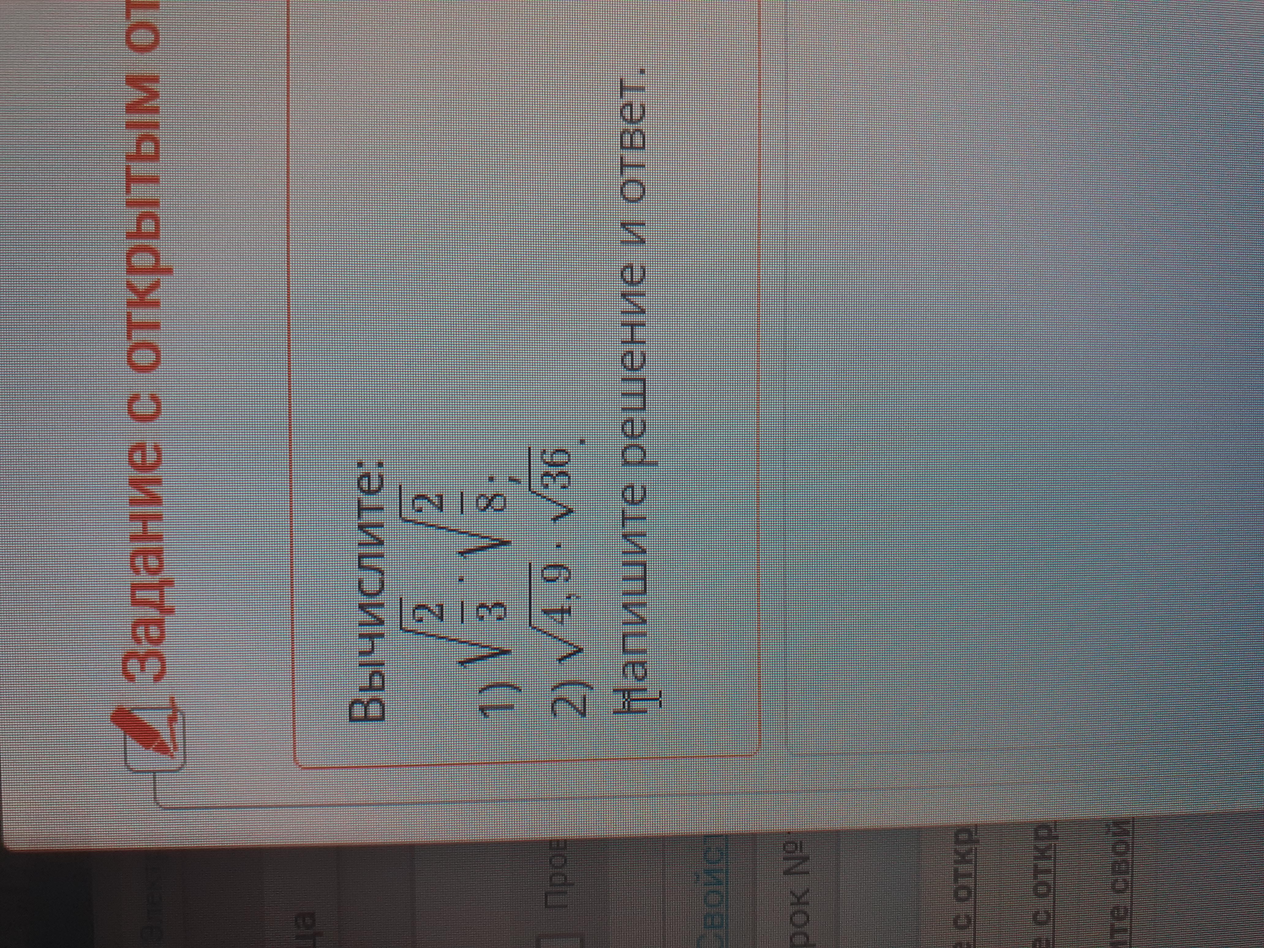sqrt{frac{2}{3}}cdot sqrt{frac{2}{8}}=sqrt{frac{2}{3}cdot frac{2}{8}}=frac{2}{2, sqrt{3cdot 2}; }=frac{1}{sqrt6}=frac{sqrt6}{6}\\\sqrt{4,9}cdot sqrt{36}=sqrt{frac{49}{10}}cdot 6=frac{sqrt{49}cdot 6}{sqrt10}=frac{7cdot 6cdot sqrt{10}}{10}=frac{42sqrt{10}}{10}=4,2sqrt{10}