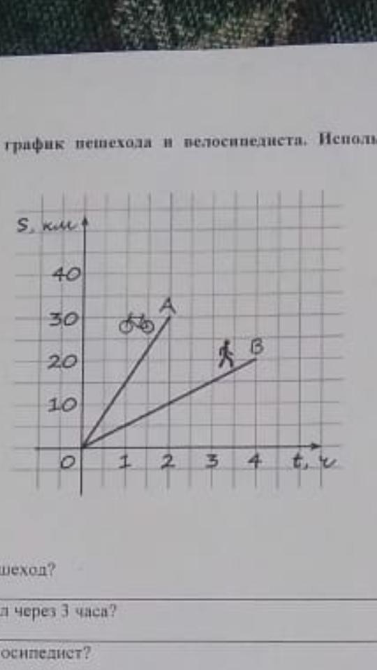 2) S(п через 3 часа)=V*t=5*3=15 км
