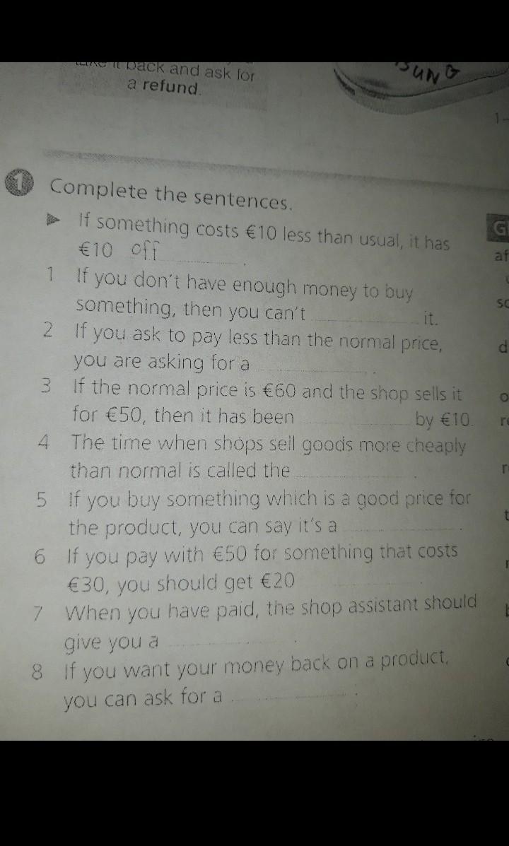 8 If you want your money back on a product, you can ask for a refund.