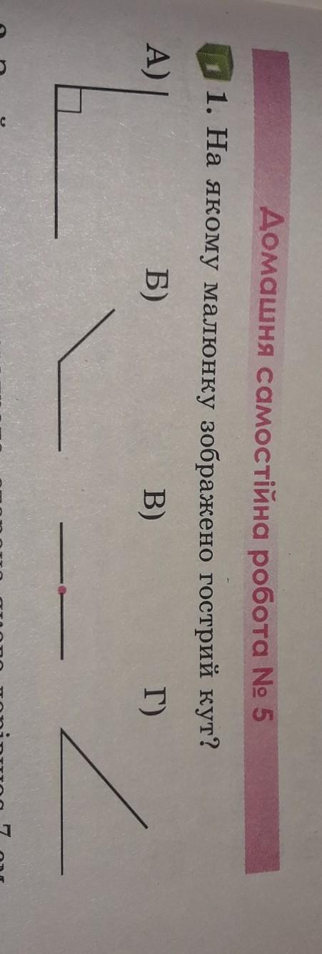 Острый угол изображен под буквой "Г", по скольку острый угол - угол, меньше 90°, то есть меньше прямого угла (под буквой "А").