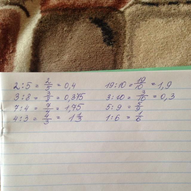 2:5 , 3:8, 7:4, 4:3 , 19:10 , 3:10, 5:9, 1:6.