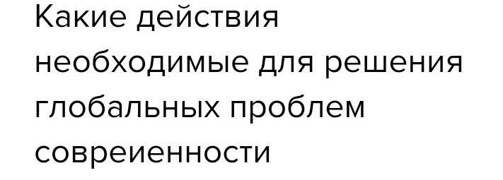 Для решения глобальных проблем необходимо, чтобы все страны мира взялись за их решение, ведь каждая страна вносит свою лепту в мировые проблемы. Так же очень важно, чтобы каждый человек стал сознательным. К примеру:перестал бы спорить направо и налево, а лучше, чтобы пришёл к тому, чтобы вообще свести производство мусора к минимуму (это как пример одной из глобальных проблем)