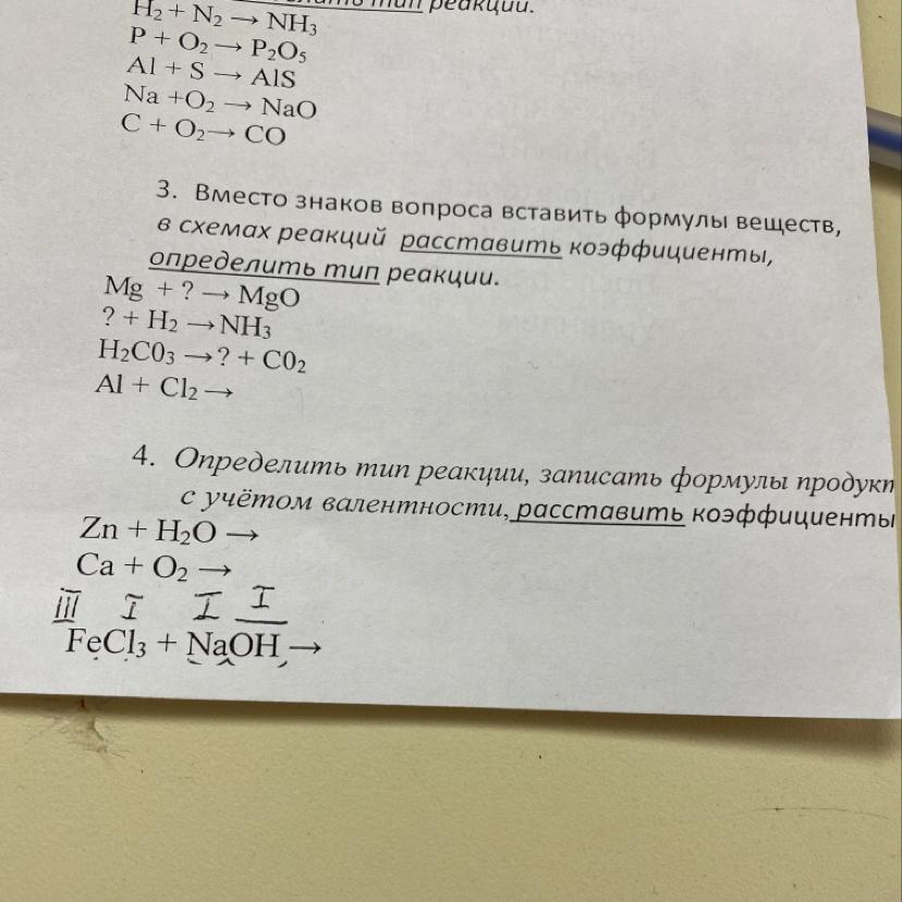 И в третьей реакции образуется гидроксид железа трехвалентного так как железо всегда трехвалентное,и хлорид натрия.Перед хлоридом натрия тройку и перед гидроксида натрия тройку.