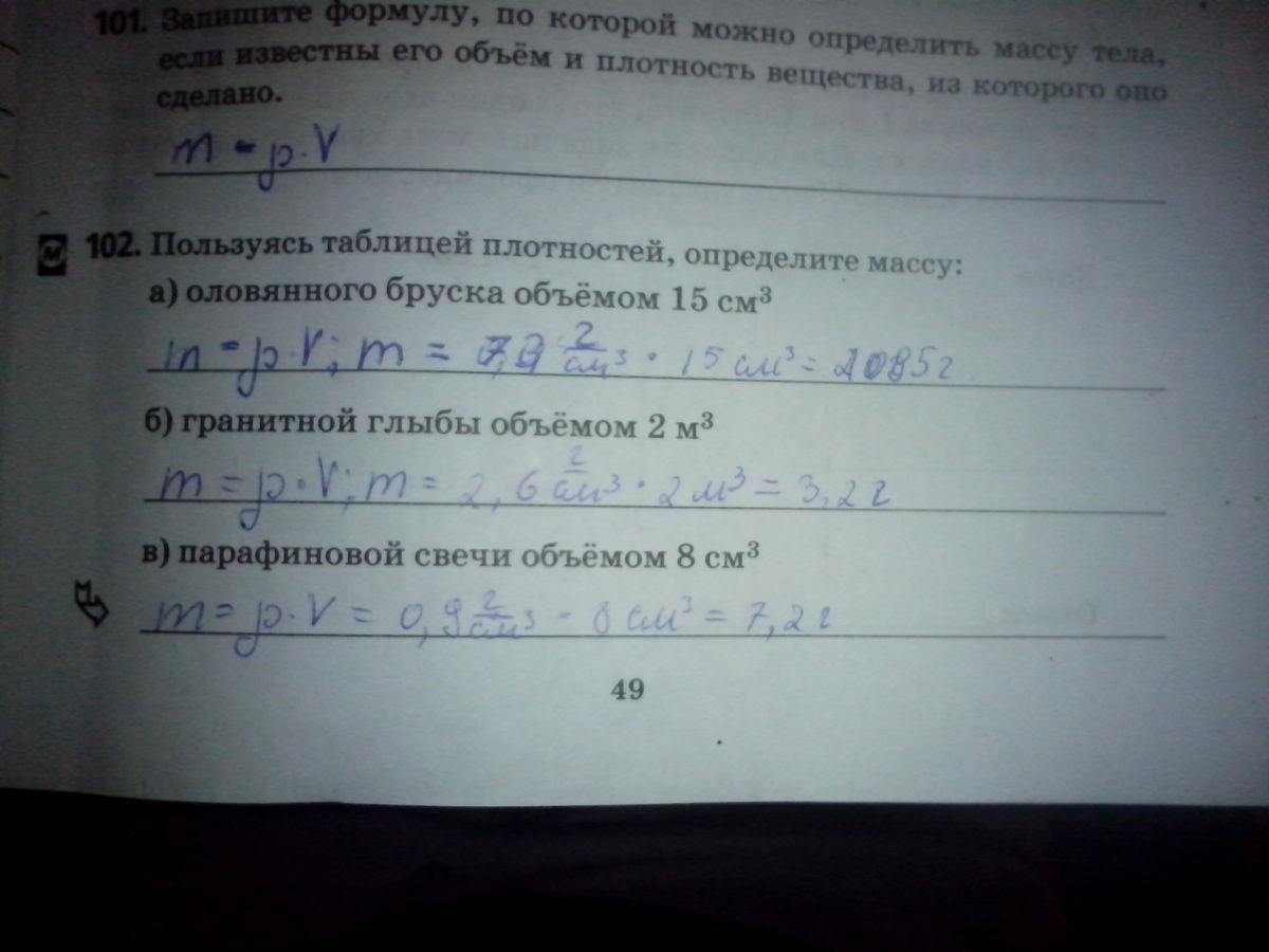 а) оловянного бруска: m = pV = 7,3 * 15 = 109,5 г