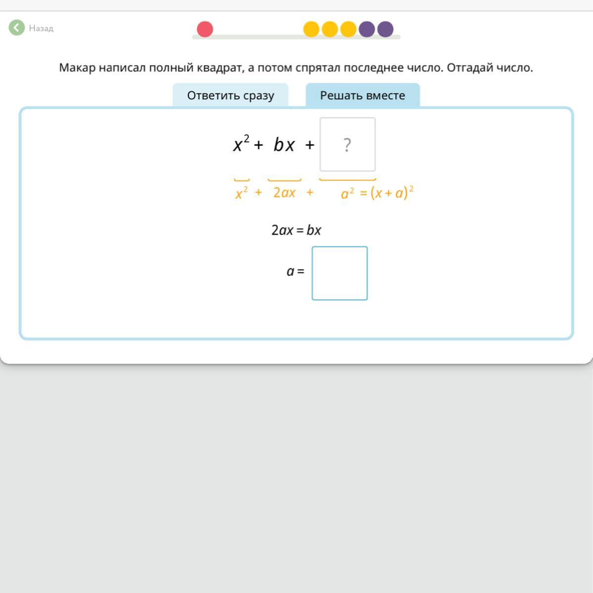 Ответ: х2+bx+a2